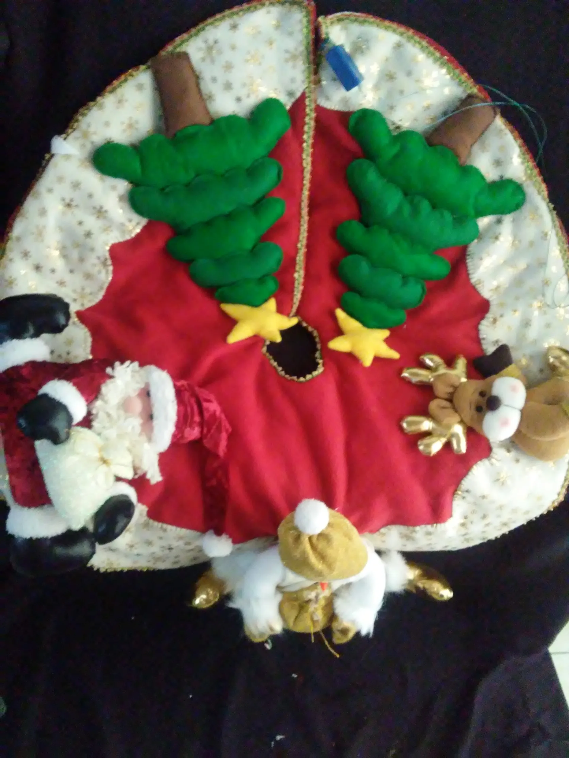 Pie de árbol en diseños navideños variados. ¡Ideal para completar tu decoración con estilo y color! 🎅✨