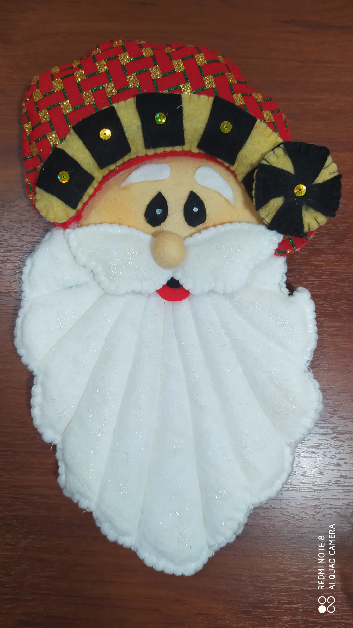 Cuelga puertas navideño con caritas de Papá Noel, ideal para dar una bienvenida alegre y festiva a tu hogar.