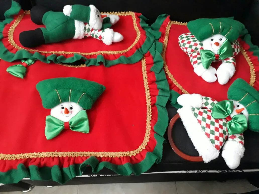 El Juego de baño de Nieve para Navidad es la elección perfecta para quienes desean llevar el encanto y la alegría de la temporada navideña también al baño. Este juego incluye cubre tapa para el inodoro, alfombra y, en algunos modelos, una funda para la tapa del tanque o portarrollos, todos decorados con la imagen de un adorable muñeco de nieve sonriente, confeccionado con telas suaves, coloridas y de excelente calidad. Los detalles bordados, los tonos festivos y los acabados artesanales hacen de este set una pieza encantadora que no solo embellece el baño, sino que también transmite calidez y espíritu navideño. Es ideal para sorprender a tus visitas o simplemente disfrutar de una decoración completa en tu hogar durante las fiestas. ⛄