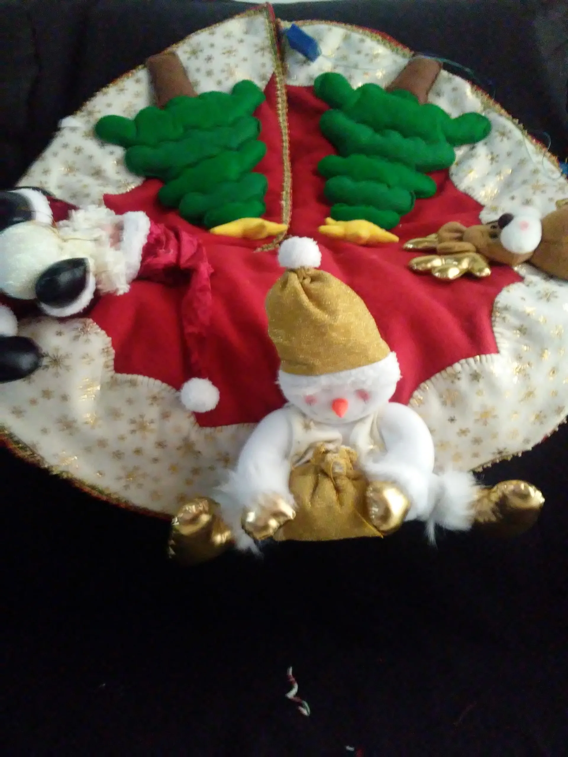 Este accesorio decorativo no solo cubre la base del árbol de manera elegante, sino que también añade un toque cálido y festivo con su diseño protagonizado por adorables muñecos de nieve. Perfecto para complementar tu decoración navideña, el pie de árbol crea un entorno visualmente armonioso donde colocar regalos, luces o simplemente dar un acabado profesional a tu arbolito.