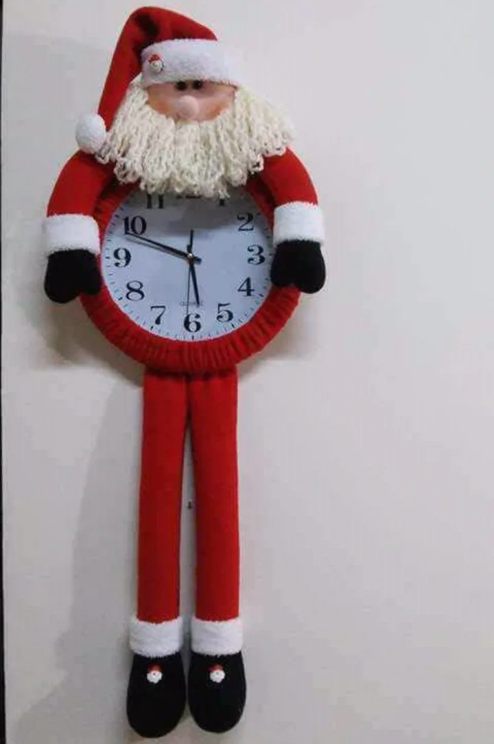 Reloj decorativo navideño con diseño de Papá Noel de patas largas, ideal para añadir encanto y alegría a tus espacios durante las fiestas. 🎄🕒
